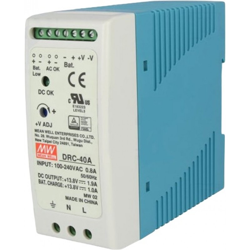 Τροφοδοτικο Ραγας 40.02W/13.8Vdc/1.9A Με Φορτιστη Μπαταριας (Ups) Drc-40A Mean Well